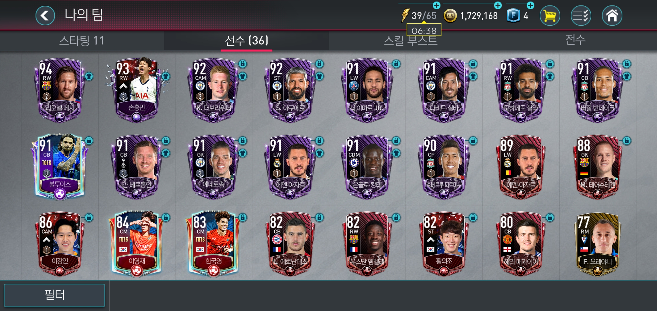 물론 운이 어느정도 작용하겠지만, 월클급 선수는 나름 잘 나오는 편이다. 공격 모드와 일반 모드로 다른 유저랑 게임을 해봐도 대부분 유저들이 알만한 많이 보유하고 있다. 나도 메시만 거래시장을 통해서 구입했고, 나머지 선수들은 캠페인이나 게임 보상으로 확보했다.